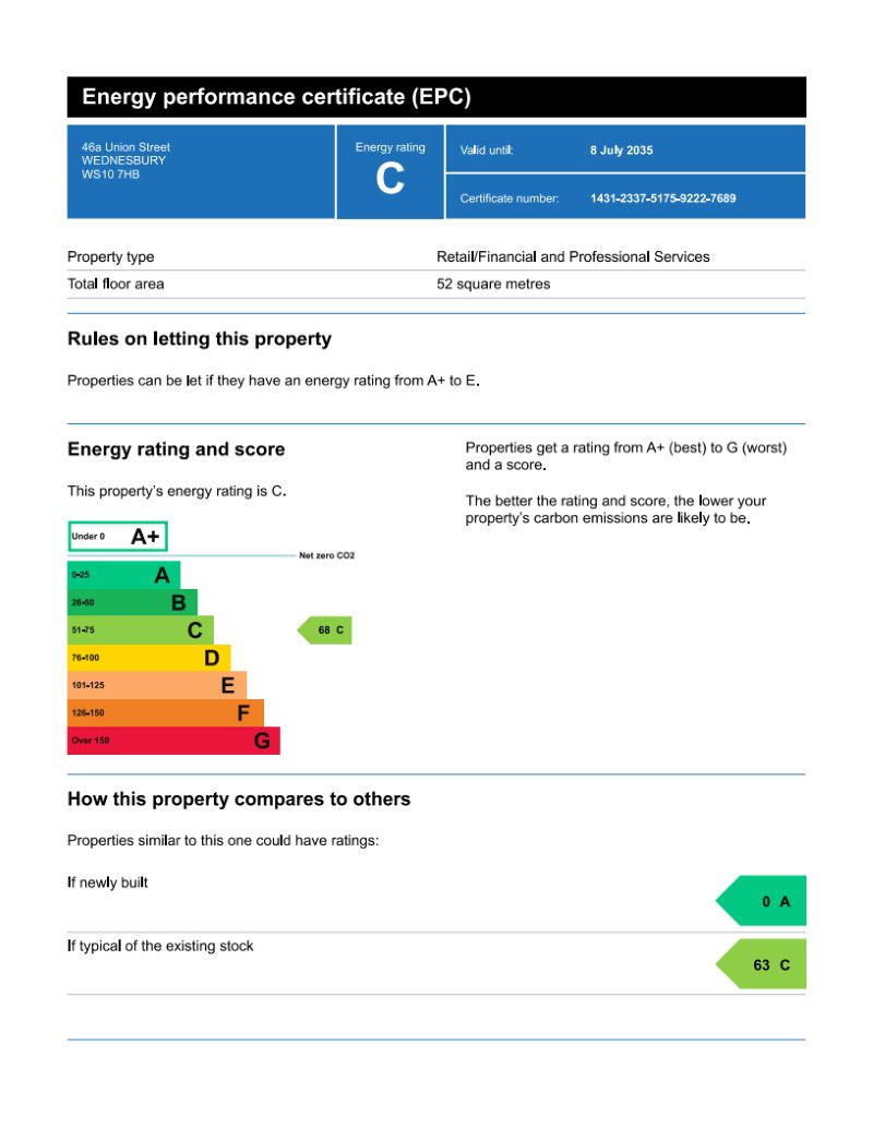 The property is located on the main pedestrian high street in Wednesbury town centre, within the Black Country region of the West Midlands. Part of the Sandwell metropolitan borough, Wednesbury benefits from excellent transport connectivity, with the M6 and M5 motorways easily accessible, providing convenient links to the wider region. The town is approximately 6 miles from Wolverhampton and 10 miles from Birmingham City Centre.Lease Terms