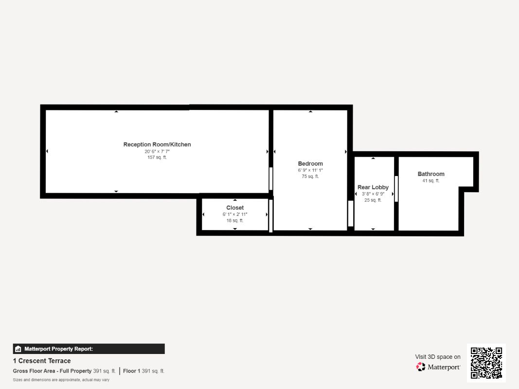 First Floor: Flat 1a: Bedroom, Reception Room, Kitchen, Bathroom/WC.