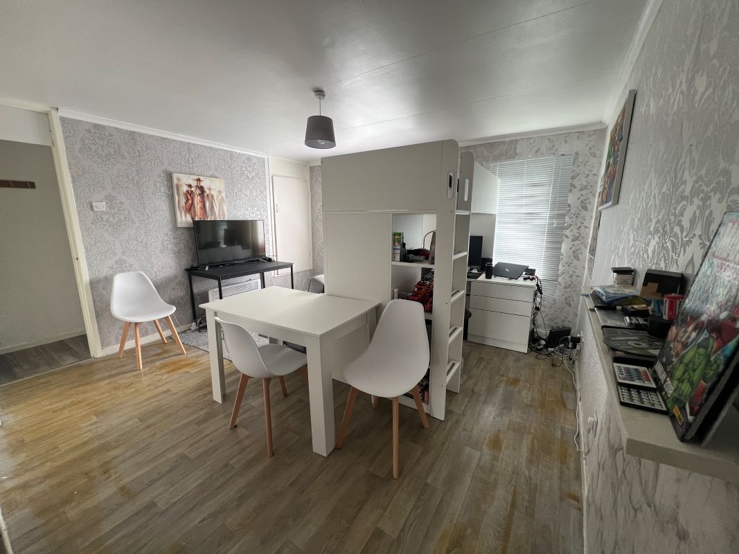 A first floor maisonette standing back from the road behind a foregarden.Accommodation