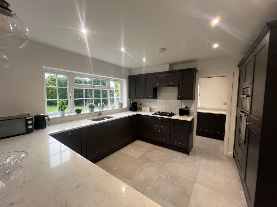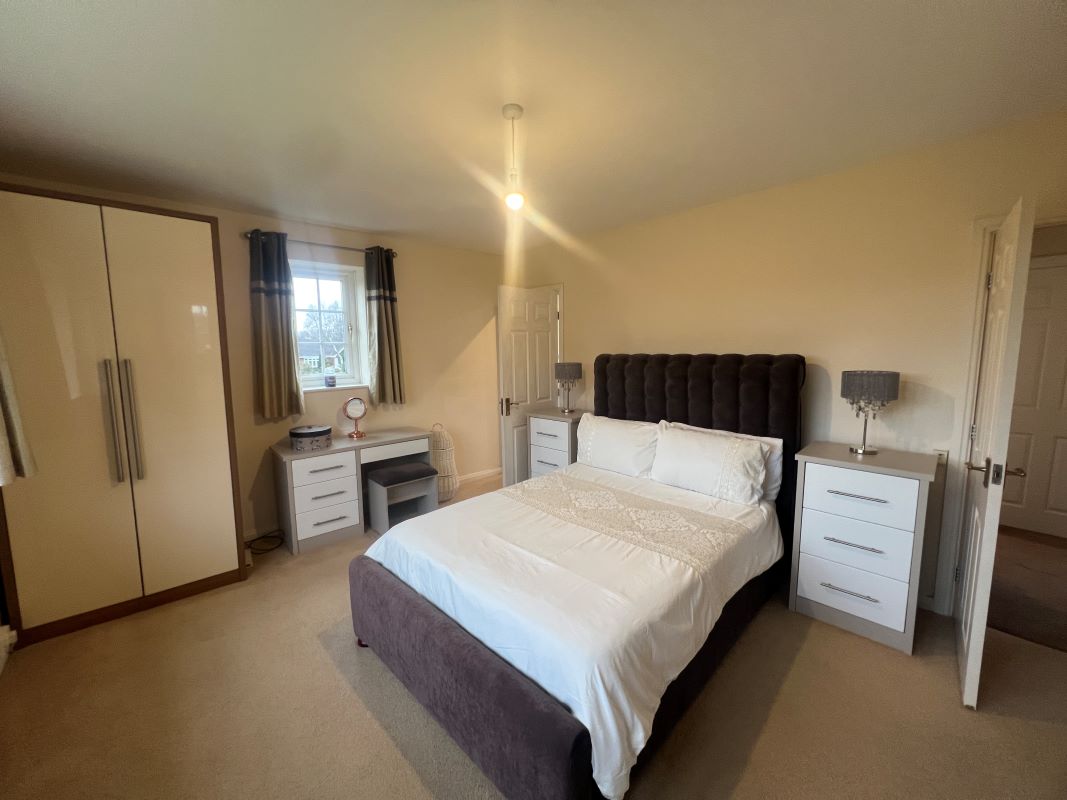 A substantial five bedroomed detached property, standing back from the road behind a driveway and foregarden.Location