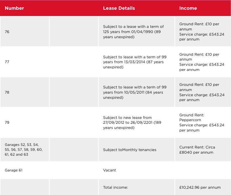 Maisonettes 76-79 have been sold off separately on long leases| Number | Lease Details | Income |